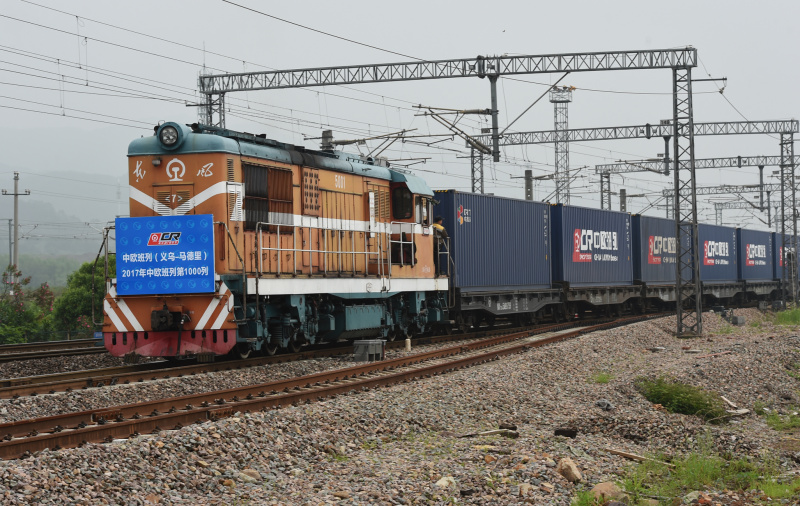 5月13日,2017年第1000列中欧班列从义乌西站驶出。